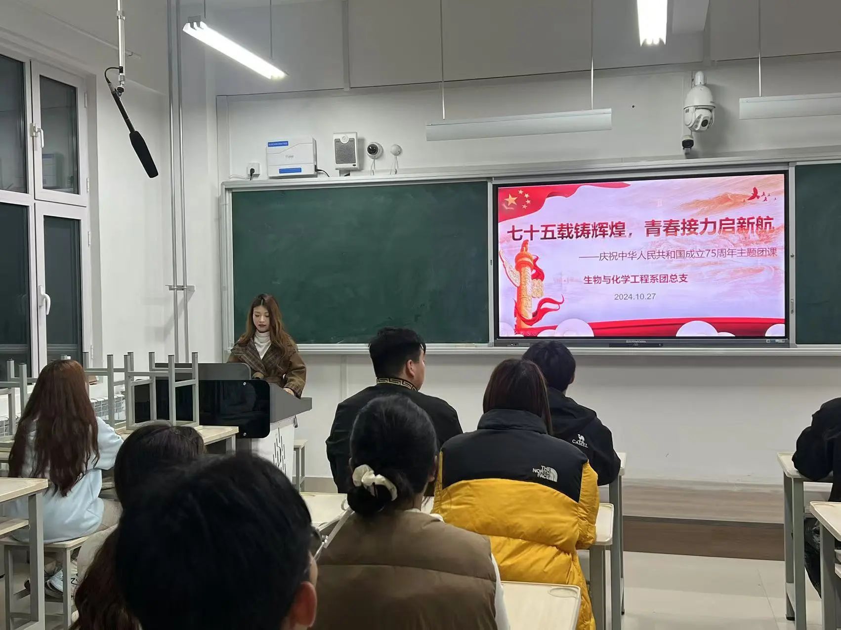 为庆祝中华人民共和国成立75周年,激发广大团员青年的爱国热情,10月27日,伟德国际1949团总支紧扣“七十五载铸辉煌,青春接力启新航”主题,在厚德楼A403开展庆祝中华人民共和国成立75周年主题团课。