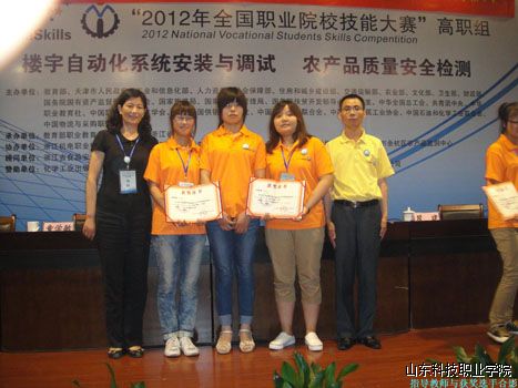6月8日至10日,由我校生物技术及应用专业3名学生及山东商业职业学院3名学生组成的山东省代表队参加了在浙江杭州市举行的2012年全国职业院校技能大赛高职组农产品质量安全检测竞赛。经过两天的剧烈竞争,学生们赛出了水平,赛出了风格,取得良好成绩,我校学生李晓红(孙清荣指导)和黄祖馨(郭建东指导)分别在畜禽肉中氟喹诺酮类兽药残留检测和茶叶中重金属含量的检测项目中获得三等奖。