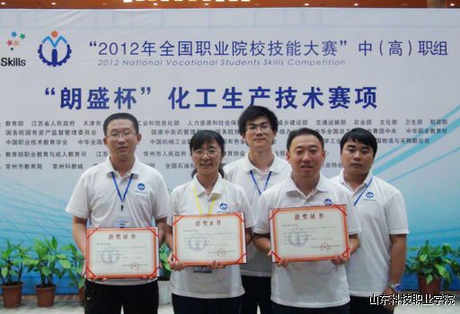 6月18日下午,为期三天的2012年全国职业院校技能大赛“朗盛杯”化工生产技术大赛在江苏常州落下帷幕。我院生物与化学工程学院代表队,在李志贤主任、任庚清老师和辛策花老师的带领下,作为山东省仅有的两支代表队之一,代表山东省参加了该项大赛,经过两天的紧张比赛和三名同学的共同努力,获得了高职组团体三等奖的好成绩,参赛选手王中才、徐涛、郑德龙三位同学直接晋升化工高级工。这是生化学院在2012年全国职业院校技能大赛中连续第二次获得好成绩。