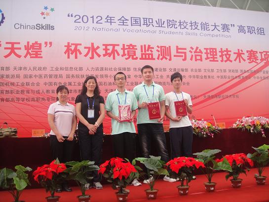 本次大赛由教育部、天津市人民政府及人力资源和社会保障部等23个国家、省部级单位主办,教育部职业教育与成人教育司、天津市教育委员会、天津渤海化工集团公司承办,教育部高等学校高职高专环保与气象类专业教学指导委员会、浙江天煌科技实业有限公司及天津渤海职业技术学院协办。本次大赛为团体赛项,共有来自全国21个省市的38所高职院校的114名选手参加。赛项内容由水样采集、水样氨氮测定、污水处理设施安装调试和典型污水处理工艺的系统设计四个项目组成。经过激烈的角逐,我院环境监测与治理技术专业代表队取得了团体三等奖的好成绩。