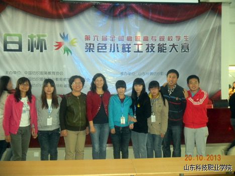 本次大赛在山东丝绸纺织职业学院举行,由中国纺织服装教育学会、全国纺织服装职业教育教学指导委员会、纺织行业职业技能鉴定指导中心联合主办。来自山东、广东、浙江、江苏、江西、四川、陕西、湖北、福建等地的21所相关高职高专院校和101名染整专业学生参加本次比赛。我系染整技术专业共有5位同学参加了本次大赛。