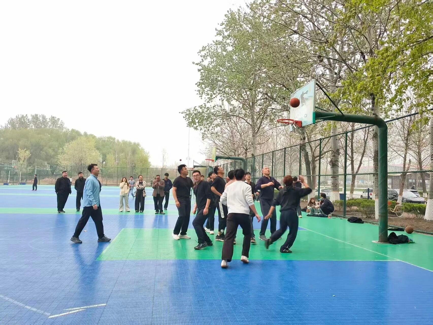 场边观众席上,呐喊声、加油声此起彼伏。每一次精准投篮、每一回奋力防守,都引来阵阵欢呼。比分交替上升,师生们认真投入,既展现了扎实的篮球技艺,更彰显了生化系师生昂扬向上、团结协作的精神风貌。轻松愉悦的氛围让现场欢笑不断,师生间的距离在互动中悄然拉近。