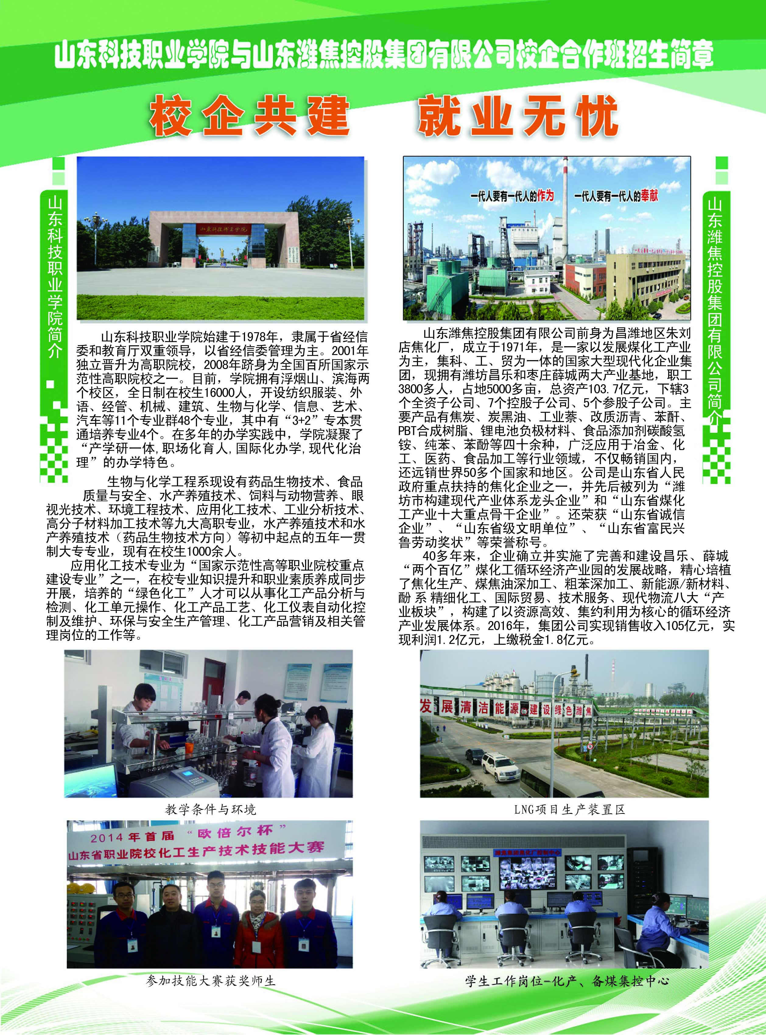 2017年伟德国际1949与山东潍焦控股集团有限公司校企合作应用化工技术专业招生简章