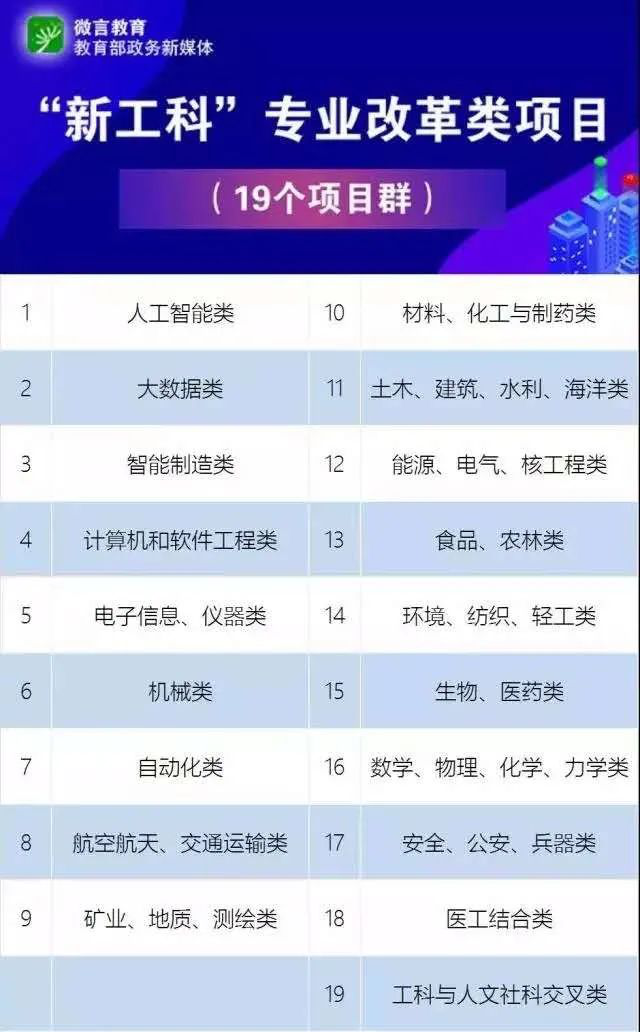 教育部“新工科”专业群:如材料、化工与制药类,食品、农林类,生物、医药类,医工结合类;