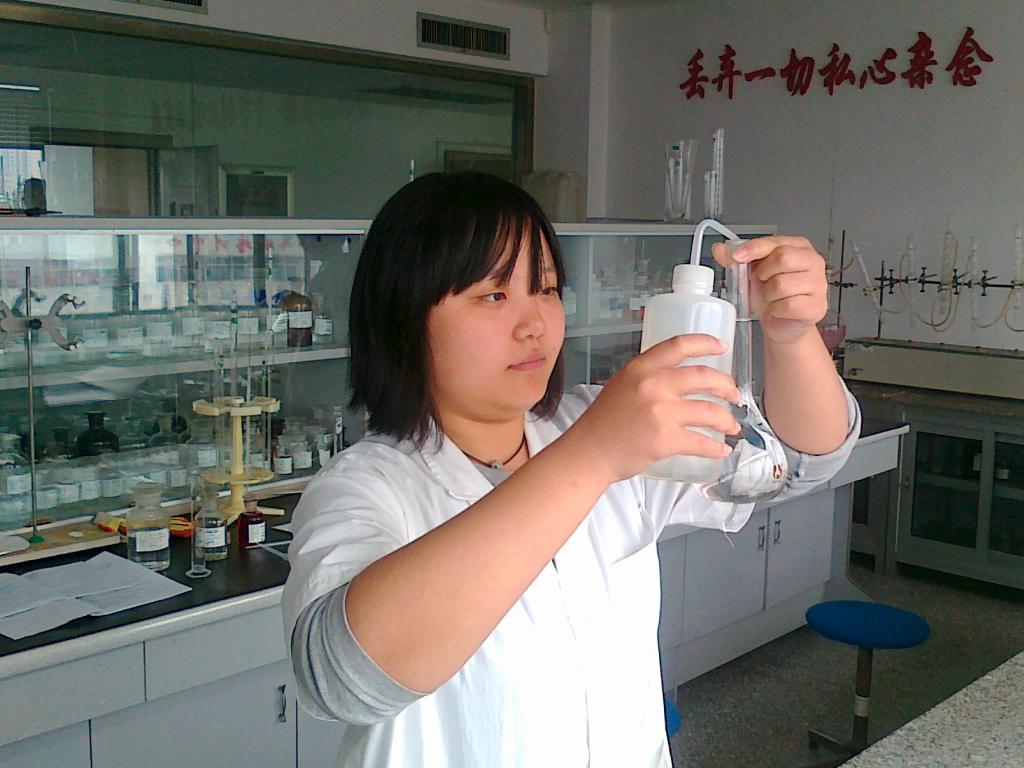 图为09级生物技术学生黄祖馨,现为潍坊市质量技术监督局检测中心业务骨干