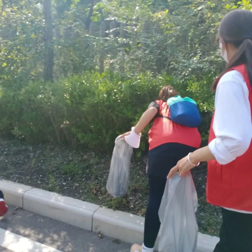 50余名志愿者来到学院南侧的浮烟山风景区进行线下捡拾白色塑料垃圾的环保实践活动。