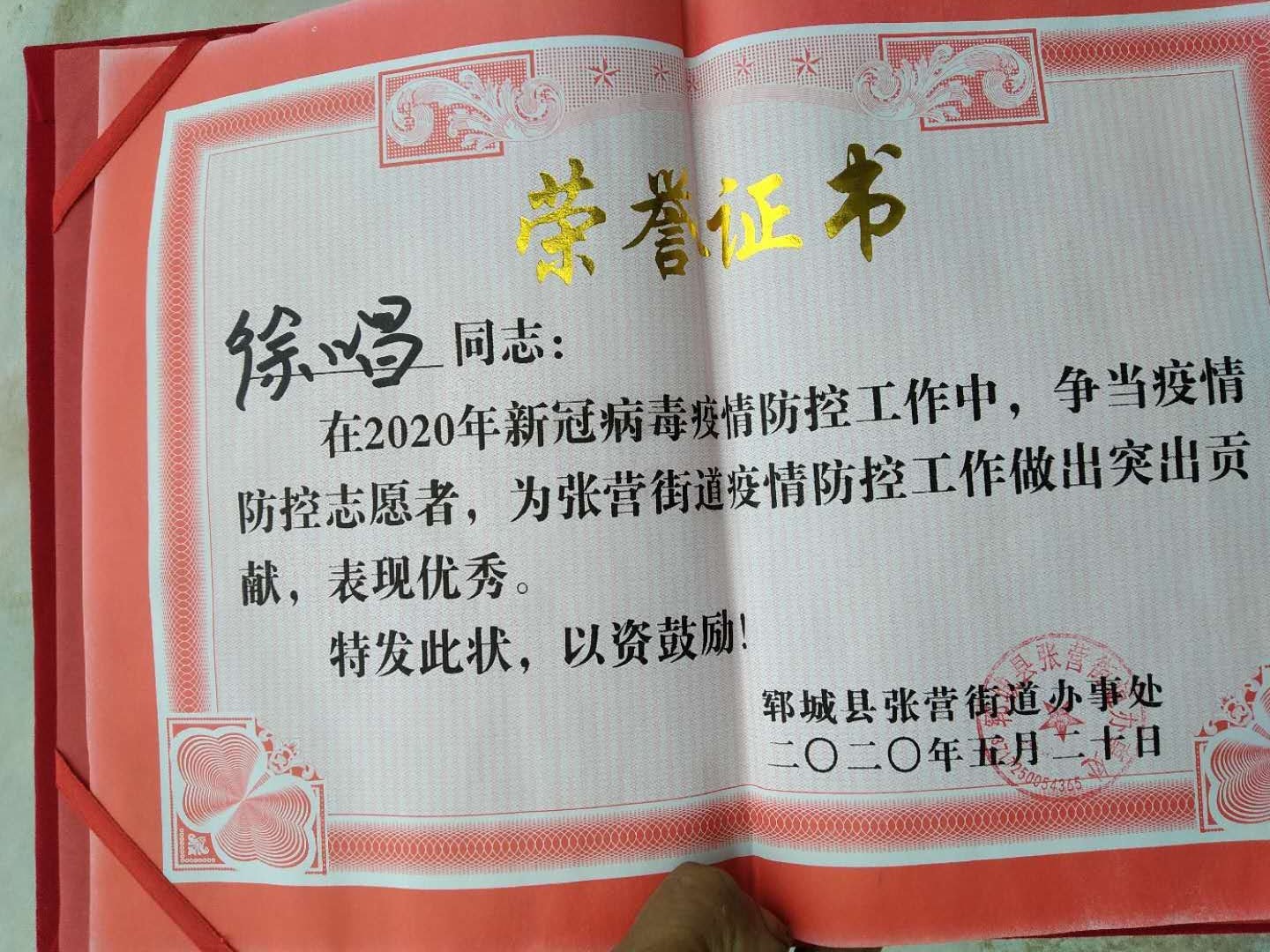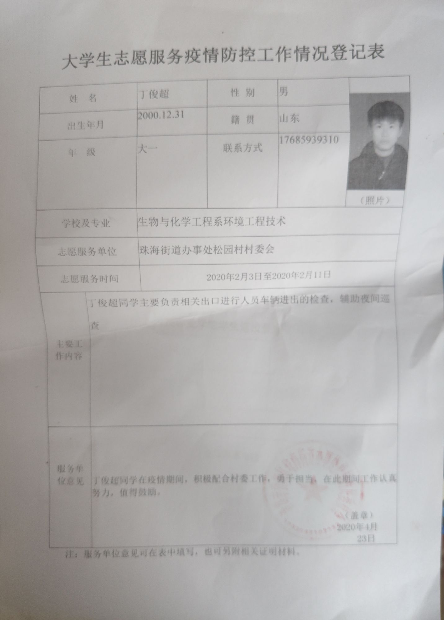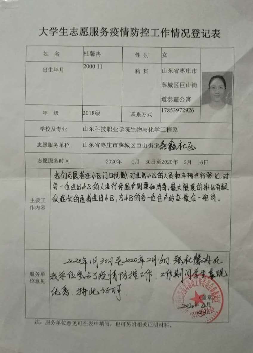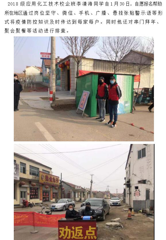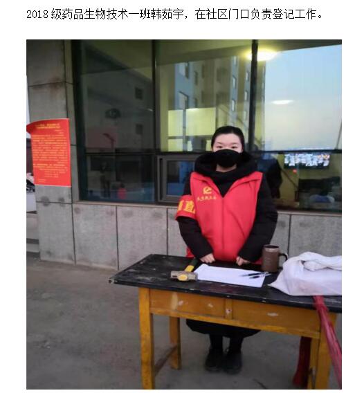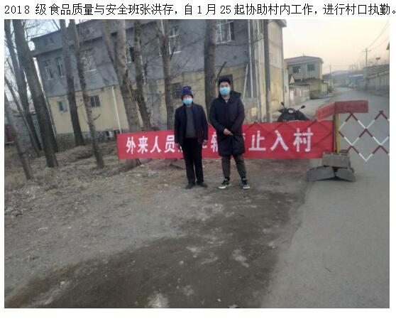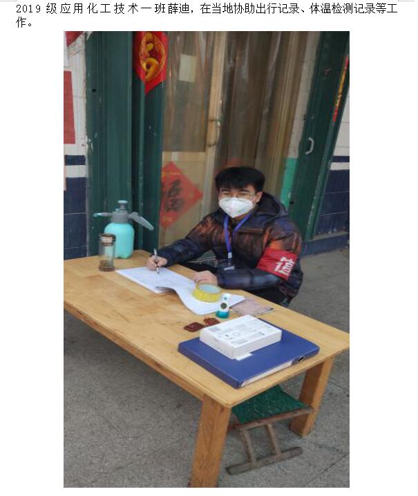 2018级应用化工技术(校企合作,山东潍焦控股)班杜馨冉在1.30-2.16参与村疫情防控志愿者