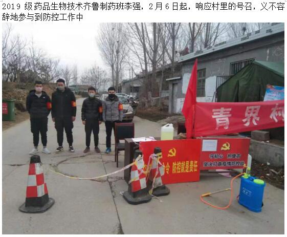 2018级药品生物技术一班徐唱同学参加本村疫情防控志愿者