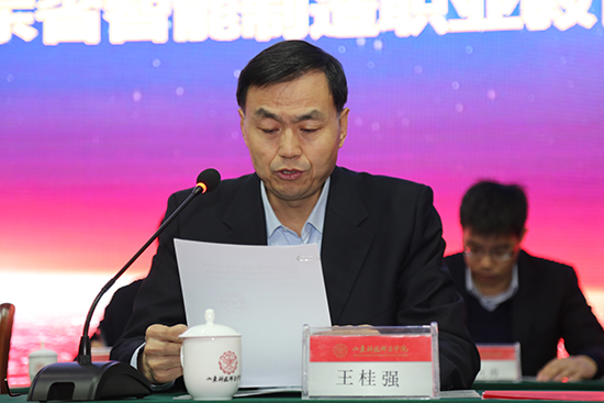 省经信委装备产业处处长王桂强同志宣读《山东省经济和信息化委员会关于成立山东省智能制造职业教育集团的批复》