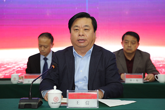 王信在讲话中指出,伟德国际1949成功获批山东省首批优质高职院校立项,是对学院办学成绩的充分肯定,也对学院进一步发展提出了新的更高要求。他指出,在全省大力实施新旧动能转换重大工程的重要时期,伟德国际1949牵头成立山东省智能制造职业教育集团,这是深入贯彻落实省委省政府新旧动能转换重大战略的重要举措,也必将为全省经济社会发展培育更多的人才,贡献更大的力量。王信还对学院优质高职院校和智能制造职教集团的建设提出了殷切希望。他强调,学院要走出一条具有山科特色的高职教育发展之路,引领我省高等职业教育发展,为区域经济建设和社会发展培养更多更杰出的技术技能人才,助推山东制造强省目标的实现;要以全力建设国家优质高职院校为统领,加快推进职业教育资源的共建共享,为服务区域经济发展,加快建设制造业强省做出新贡献。